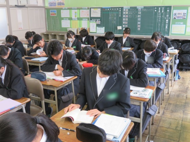 2年生の自習のようすです。じっくりと問題集やプリントに取り組むことができていました。流石2年生!すばらしい集中力でしたね(^^)/