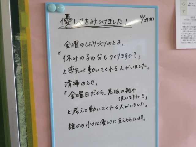 4月27日(月) 小さなやさしさに支えられて【2年黒板メッセージ】