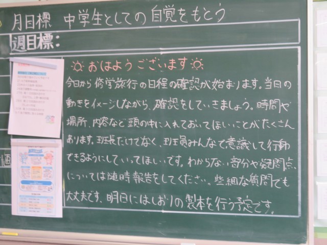 4月27日(月) みんなで意識して【3年黒板メッセージ】