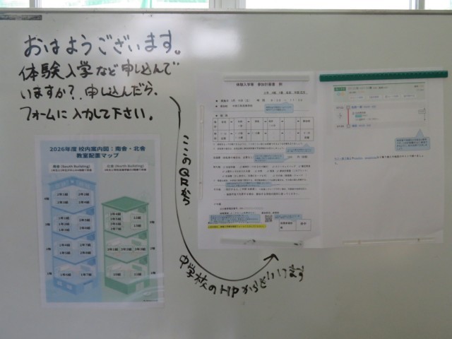 4月28日(火) 教室黒板とフロアのメッセージです 公開日 2026/04/28 更新日 2026/04/28 人権教育といじめ対策 担任の先生と進路指導の先生からのメッセージです(^^)/ 3年 全学年