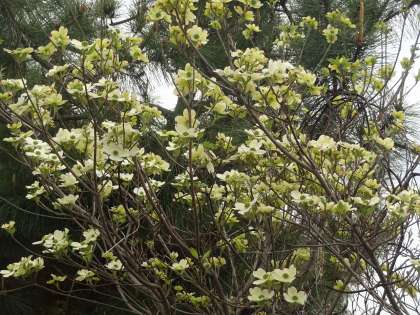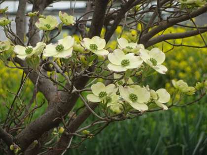 ハナミズキの白い花です。例年よりも花が開くのが早いように思います。それだけ陽気が良いということですね。