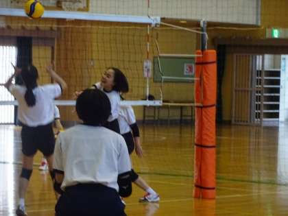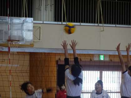 練習では、鋭いスパイクがしっかりと決まっていました。先月行われた春季一宮バレーボール大会で、女子バレーボール部は市内で3位でした。夏の大会では、優勝目指してがんばってくださいね。
