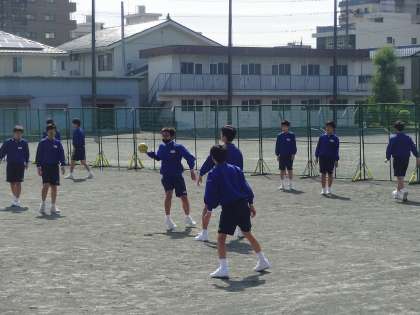 ハンドボール部男子の練習の様子です。ハンドボール部男子は、先月に開催された春季一宮市民ハンドボール大会で見事優勝をしました。夏の大会でもよい結果となるように頑張ってください。