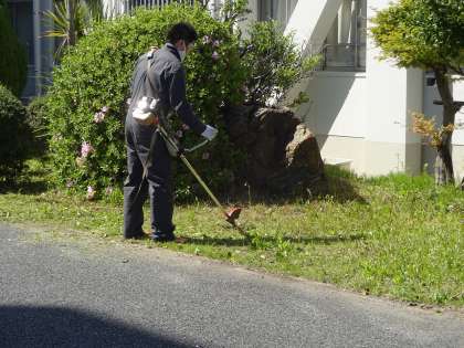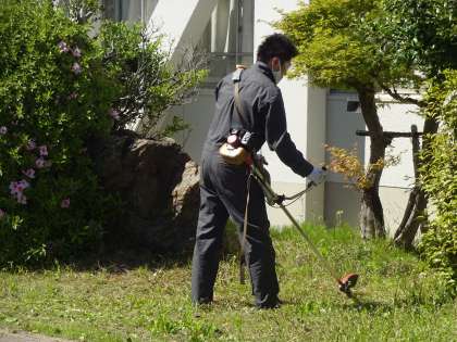 昨日の雨で、校庭の雑草がグングンと伸びました。今日の午後、入学式、始業式に向けて校務主任の先生が校内の除草作業を行いました。