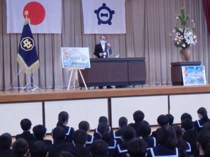 始業式の後、担任が発表され、新クラスで学級の時間が行われました。新たな出会いの中、生徒の皆さんはとてもよい表情でした。