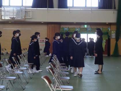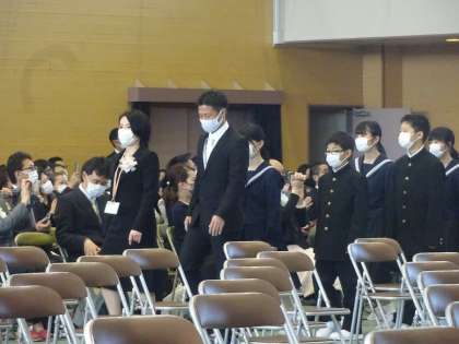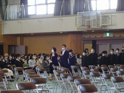 入学式の開始時間9時より若干遅れましたが、入学式がスタートしました。新一年生は拍手でアリーナに入場をしました。新入生は、少し緊張した表情でしたが、しっかりとした姿勢と気持ちで、立派に入学式に参加することができました。