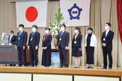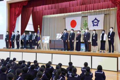 3年生の担任紹介の様子です。3年生は進路指導をひかえた大事な一年になります。力を合わせていっしょに頑張っていきましょう。