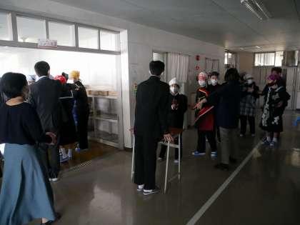 今日から給食がスタートしました。どの学年もしっかりと給食当番活動を行う姿が見られました。久しぶりにおいしく給食を食べました。
