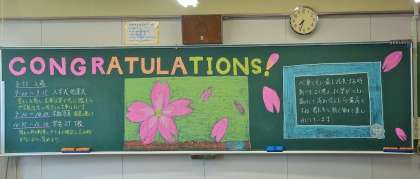 4月7日(水)の朝、新入生が教室に入って、「中部中学校に入学してよかった。これからこの中部中学校で頑張っていこう。」と思ってくれるように、心を込めて描きました。