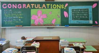4月11日(日) 美術部が作成した黒板アート (1年1組)