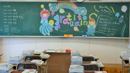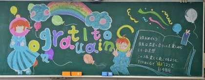 4月11日(日)美術部が作成した黒板アート (1年4組)