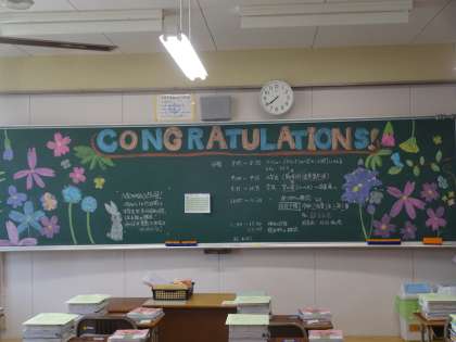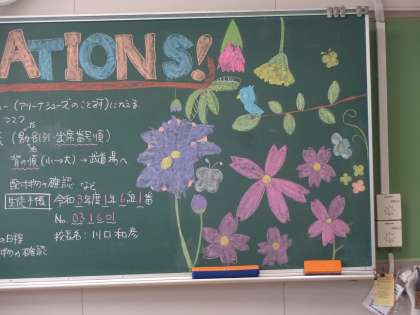 1年6組の黒板アートです。