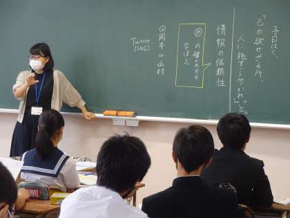 3年生の数学の授業の様子です。今日の授業では、情報の信頼性について考えました。