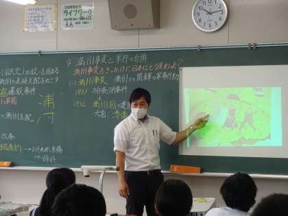 3年生の社会の授業の様子です。今日は歴史分野の勉強で、満州事変やその当時の外交について学びました。