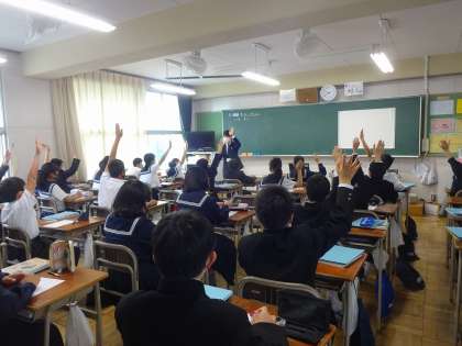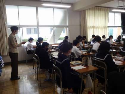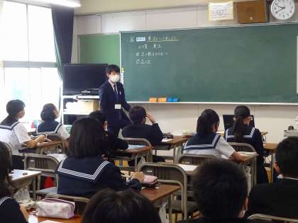 1年生の数学の授業の様子です。今日は「正の数・負の数」の乗法について勉強しました。たくさんの生徒が挙手して積極的に発表する姿がありました。今日は市の訪問研修アドバイザーの先生が中部中学校を訪問され、授業を参観されました。
