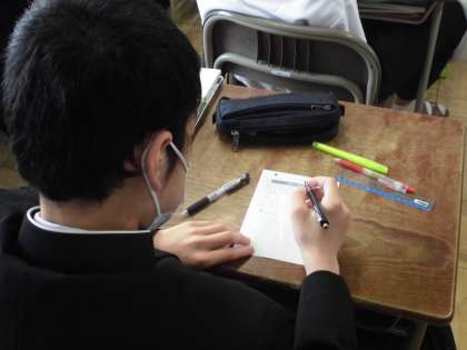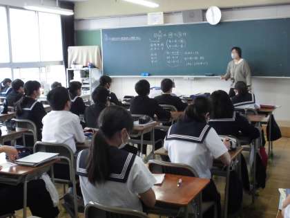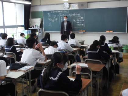 数学の授業では、文字式を利用して整数の問題を解決できるように勉強しています。真剣に話を聞いたり、プリントを解いたりと、真面目に取り組む姿が見られました。