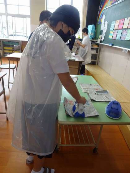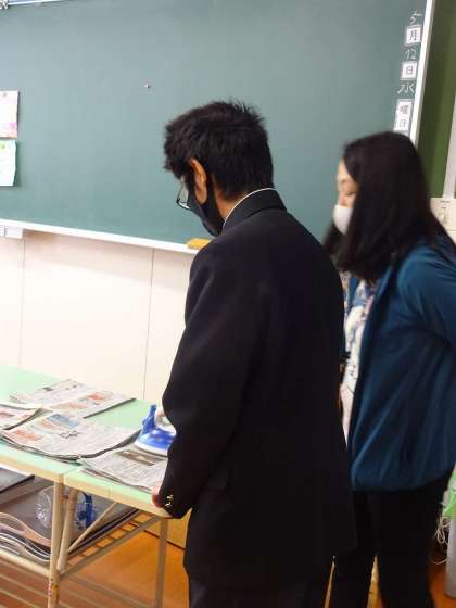 染めた和紙を乾かせるためにアイロンをかけます。そうすると乾きが早いです。