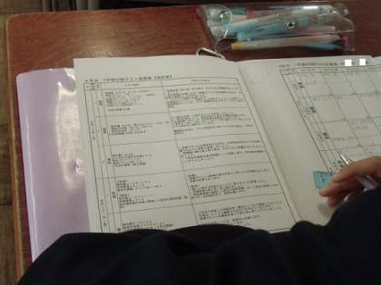 6時間目に、中間テストの範囲のプリントが配付され、テスト勉強の計画を立てました。