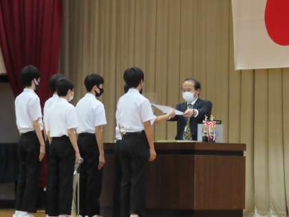 卓球部男子は、令和3年度春季一宮市民大会で優勝したので、本日表彰をしました。