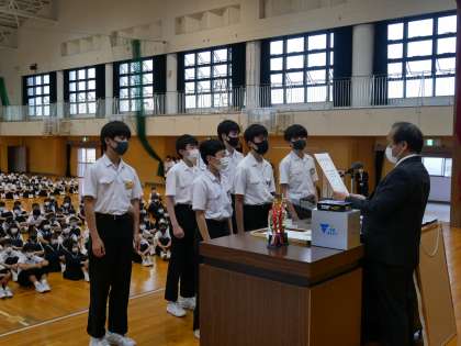 5月17日(月)表彰伝達 その2 男子卓球部の表彰