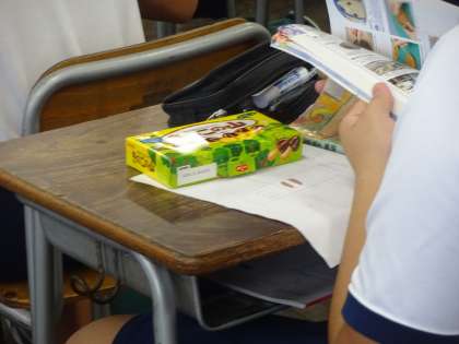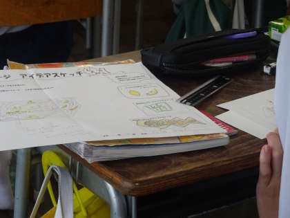 3年生の美術では、様々な商品のパッケージデザインを参考にして、自分なりのデザインを考えて描いています。
