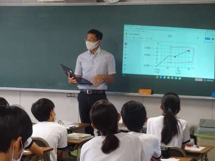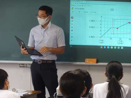 2年生の数学の授業の様子です。一次関数のグラフについて勉強をしています。