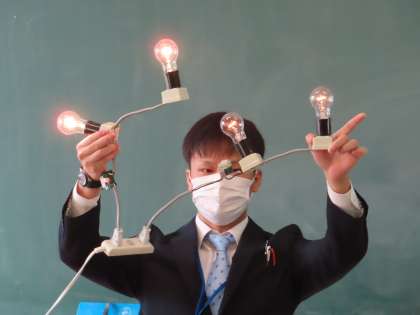 直列回路と並列回路の抵抗の大きさと、個々の抵抗との関係について調べました。