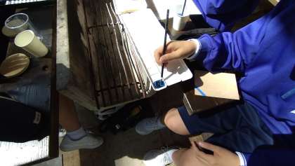 生徒たちは、各自準備してきた下絵をもとに、木葉書やキーホルダー作りに取り組んでいます。傑作が期待できます。