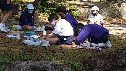 10月11日(月)一年生ひるがのキャンプ 木葉書とキーホルダー作り