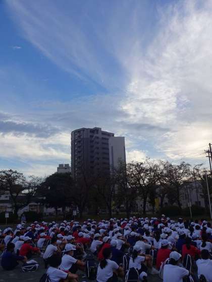 一年生のひるがのキャンプが無事終了しました。ひるがの高原キャンプ場は、よい気候で本当にキャンプ日和でした。紅葉が始まっていて、炊事場の屋根に「どんぐり」が落ちる音がカンカンとしていました。稲荷公園での解散式を終えて、中中一年生は元気よく岐路につきました。お疲れさまでした。稲荷公園から空を見上げるときれいに三日月が見えました。中中一年生のキャンプからの帰着ををほほえましく見守っているようでした。