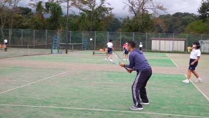 テニスの体験活動の様子です。思いっきりテニスを楽しみました。