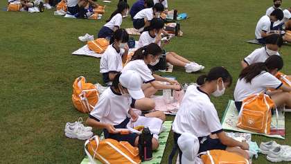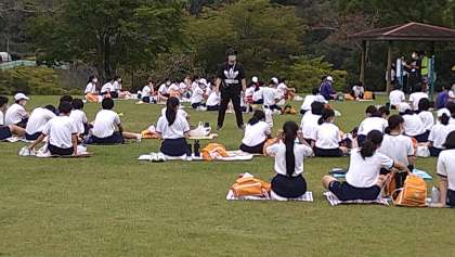 芝生広場で、お弁当を食べました。大自然の中で食べるお弁当は、格別おいしいです。