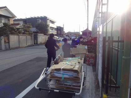 今日は地域の資源回収の日です。本校の美化委員も学校の資源回収活動を行いました。