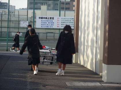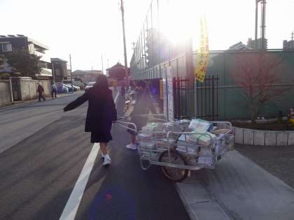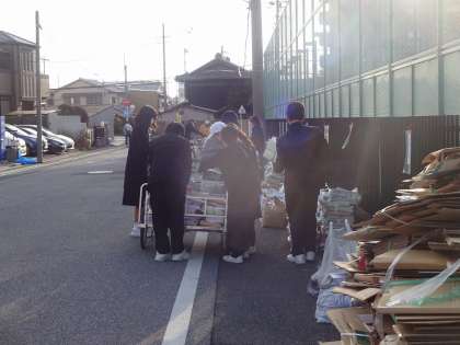 美化委員の生徒たちが、校内でたまった資源を、集積場まで運びました。朝からの活動ありがとうございました。