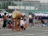 革を使ったキーカバーやキーホルダーの縫いの作業を黙々と行っています。