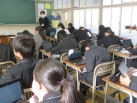 北斎や広重、雪舟などの絵を見ながら、模写に挑戦しています。「墨に五彩あり」という言葉があるように、筆の使い方や水の量を工夫しながら、さまざまな色合いを表現しています。制作後には、振り返りカードに「工夫したこと、気づいたこと、次の目標」を書きました。文化作品展に出品する日が楽しみです。