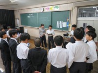 1年生の数学の授業のようすです。「反対の性質をもつ量や基準を決めたときの量の表し方を考えよう」というめあてで学習を進めていました。