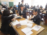 2年生の数学の授業のようすです。「章末の問題を解こう」というめあてで、中間テストの範囲の問題演習に取り組んでいました。たくさん問題を解いて自信をふくらませることができましたね。