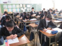 2年生の英語の授業のようすです。「to不定詞③の使い方をマスターしよう」というめあてで学習を進めていました。日本語文を英文に直す問題を解きながら、使い方の確認をすることができましたね。