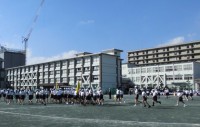 中部中学校から自転車に乗っている方にお願いです。自転車が横に並んで走行することは、道路交通法違反です。縦一列で走行し、安全運転をお願いします!