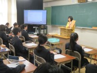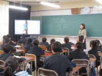 1年生の理科の授業のようすです。「水溶液から溶質を取り出す方法を考えよう」というめあてで学習を進めていました。どんな方法があるか説明できたかな。