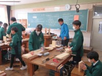 1年生の技術の授業のようすです。「部品加工をしよう」というめあてで、木の部品のカ...