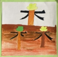 1年生が「色彩や形の調和を考えて完成させよう」というめあてで取り組んだ「文字が生...