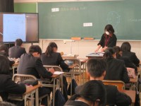 1年生の英語の授業のようすです。「テストの復習をして、1つでも多くできることを増...