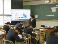 1年生の数学の授業のようすです。「比例・反比例を利用して、身の回りの課題を解決し...
