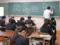 2年生の英語の授業のようすです。三角形の証明を考えていました。図形の性質や合同に...