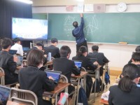 2年生の社会の授業のようすです。教科担任の先生が読み上げる問題に深いかかわりがあ...