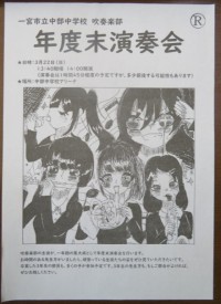 吹奏楽部からのお知らせが職員室や校長室に届きました。今年も吹奏楽部の一年間の集大...
