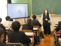 1年生の英語や技術の授業のようすです。どんな先生に教えてもらえるのか、自己紹介を...
