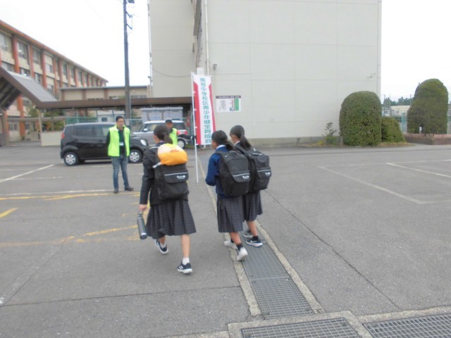 朝からどんよりとした空模様。小雨がパラパラと降り出しましたが、みなさんの元気なあいさつのおかげで、いつの間にか雨も吹き飛んでしまいました。昨日に引き続き、PTA役員の方以外の方にもご参加いただき、感謝しています。
